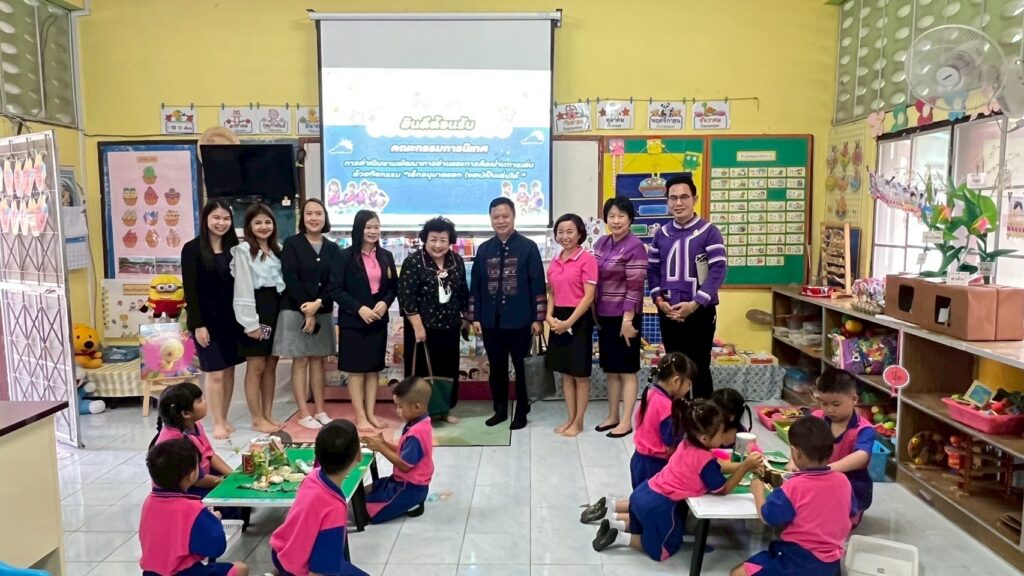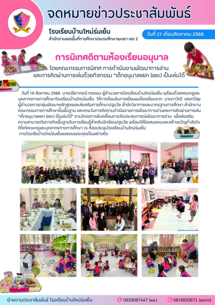 วันที่ 19 สิงหาคม 2568 ต้อนรับการเยี่ยมชมห้องเรียนจาก นางภาวิณี แสงทวีสุข ผู้อำนวยการกลุ่มพัฒนาหลักสูตรและส่งเสริมการศึกษาปฐมวัย สำนักวิชาการและมาตรฐานการศึกษา สำนักงานคณะกรรมการการศึกษาขั้นพื้นฐาน และคณะในการติดตามดำเนินงานการพัฒนาการอ่านและการคิดผ่านการเล่น “เด็กอนุบาลแยก (ขยะ) เป็นเล่นได้” ตามโครงการขับเคลื่อนการจัดประสบการณ์พัฒนาการอ่าน เพื่อส่งเสริมความสามารถในการคิดพื้นฐานในการเรียนรู้สำหรับนักเรียนปฐมวัยBy admin / 29/09/2025
