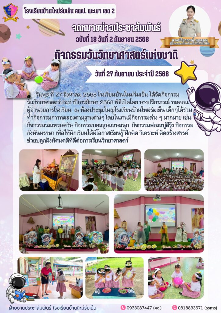 นที่ 19 สิงหาคม 2568 นางปรียาภรณ์ ทดดอน ผู้อำนวยการโรงเรียนบ้านใหม่ร่มเย็น พร้อมด้วยคณะครูและบุคลากรทางการศึกษาโรงเรียนบ้านใหม่ร่มเย็น ให้การต้อนรับการเยี่ยมชมห้องเรียนจาก นางภาวิณี แสงทวีสุข ผู้อำนวยการกลุ่มพัฒนาหลักสูตรและส่งเสริมการศึกษาปฐมวัย สำนักวิชาการและมาตรฐานการศึกษา สำนักงานคณะกรรมการการศึกษาขั้นพื้นฐาน และคณะในการติดตามดำเนินงานการพัฒนาการอ่านและการคิดผ่านการเล่น “เด็กอนุบาลแยก (ขยะ) เป็นเล่นได้” ตามโครงการขับเคลื่อนการจัดประสบการณ์พัฒนาการอ่าน เพื่อส่งเสริมความสามารถในการคิดพื้นฐานในการเรียนรู้สำหรับนักเรียนปฐมวัย